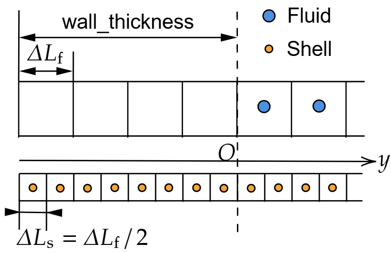 壁面几何中有两个thickness需要区分。一个是wall_thickness,这是壁面比流体在y方向多延伸出的长度;另一个是shell_thickness,这才是壁面的厚度。
